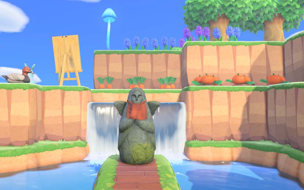 You can customize the Goddess Statue item to Kakariko Village style! The closest approximation of a Cucco is a customized duck decoy item. There’s a few other references to the village gameplay pictured too. Can you spot them?